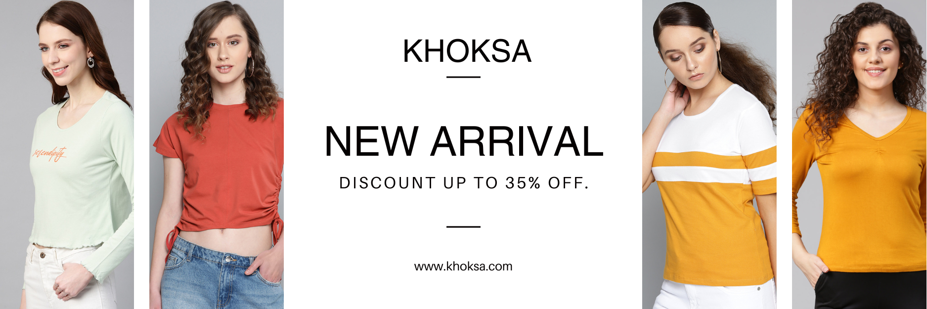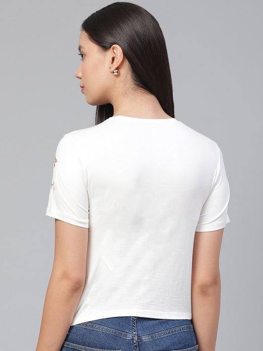 KHOKSA Casual Regular Fit Round T Shirt for Women Color Off White