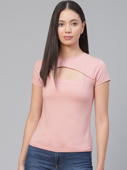 KHOKSA Casual Regular Fit Round Top for Women Light Pink